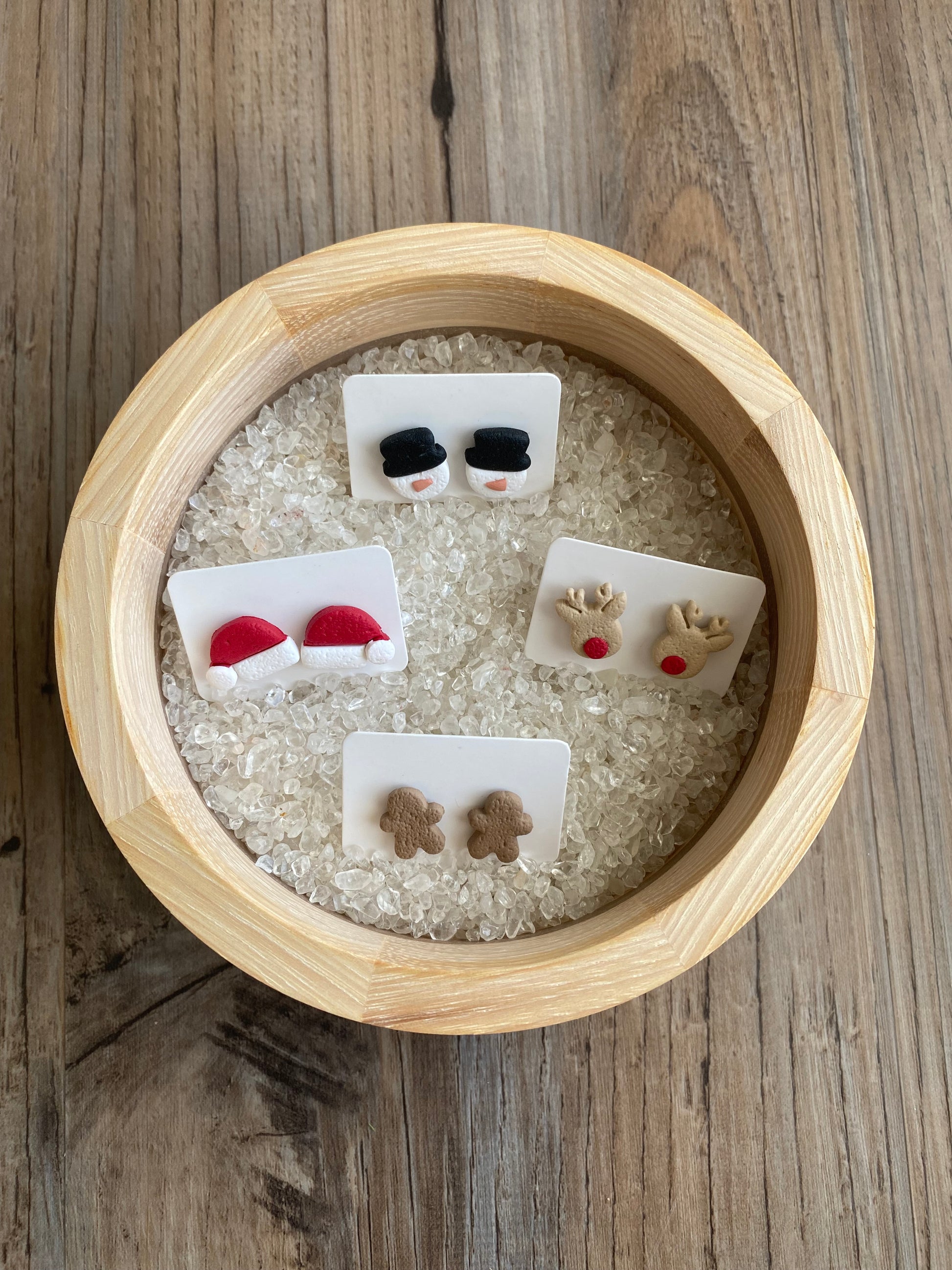 Stud earrings made from lightweight polymer clay, and measuring approximately 0.5 inches. Posts are stainless steel. They are tarnish resistant & a great option for sensitive ears. We suggest you do not expose earrings to harsh chemicals such as perfume, makeup or hair products. Store earrings in a soft pouch or jewelry box when not wearing them, and remove them before showering, swimming or sleeping as exposure to water or bending could cause damage.